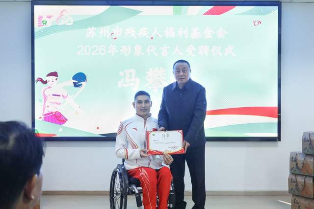 2月11日,苏州市残疾东谈主福利基金会2026形象代言东谈主冯攀峰受聘典礼在阳光大厦举行。残奥乒乓传说东谈主物冯攀峰与现任形象代言东谈主陆鸿联袂助残公益慈善,成为基金会“双星代言”的助残公益榜样,为苏州助残慈好业绩注入新活力。苏州市残联党组文书、理事长胡岚投入典礼。