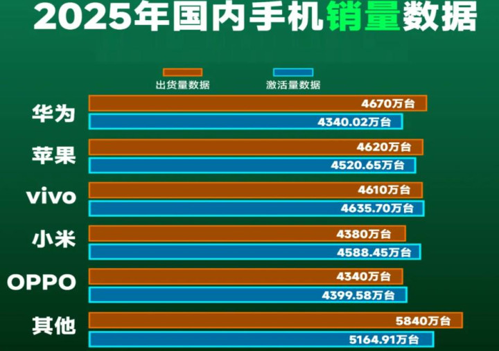 关注手机消息的人都清楚,在机构没有公布数据之前,大家都说2025年,中国手机市场,VIVO是第一、小米是第二,苹果是第三名,因为根据之前的激活量统计的。