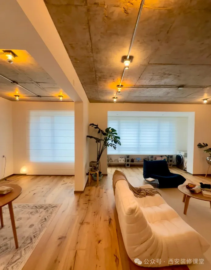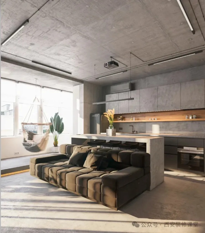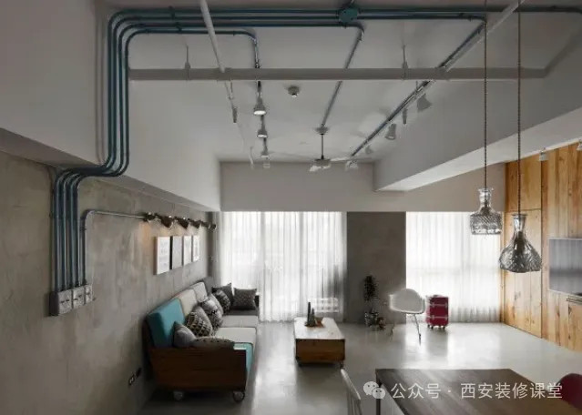 写在最后:现代工业风做法,很容易过头了,就容易出现真的仓库的既视感;所以一定要关注家居氛围本身,建议只是顶面以及局部大梁裸露水泥面,只在顶面采用镀锌管排线,但是一定要有秩序感,墙面最好保持暗藏管线,这样既保留了工业风的韵味,同时又能兼顾现代家居的氛围感。