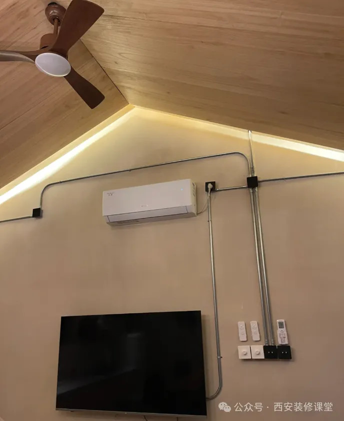 明装线管尽量避免数量多的过墙和过梁,否则无形中显得凌乱,反而没有了工业风的质感和极简了。
