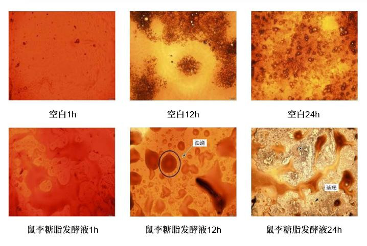鼠李糖脂的两亲分子可与稠油形成清闲水包油(O/W)乳状液,其疏水链与原油烃类精粹相接,亲水基团在油滴名义形成电荷樊篱,幸免油团荟萃。有盘考骄气,40% 体积含量的鼠李糖脂发酵液与陈庄稠油夹杂后,原油黏度从2577mPa・s降至927mPa・s,降黏率达 64.02%。