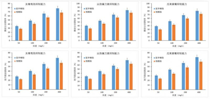 图6 鼠李糖脂对于农业病原菌的摆布作用