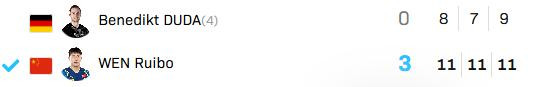 19岁新星温瑞博的进步有目共睹,挑战四号种子杜达是格外自信,充分执行准备的技战术,从前三板变化做起,出色限制对方特点,基本让自己保持主动权,中途有所波动,但能够及时解决问题,这样又一场3比0横扫过关,本站单打截至目前还一局未丢。