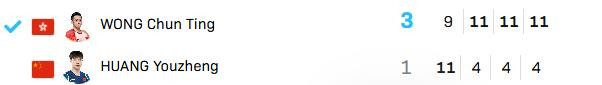 这场失利对于黄友政而言属实可惜,完全被裁判左右情绪,接连发球被警告罚分相当不满,于是从次局开始心态出现极大起伏,似乎都没能专注于赛场,越打越差是失去斗志,连续三局仅仅拿4分崩盘,从1-0到1-3被淘汰。