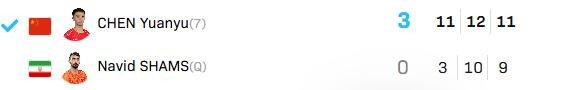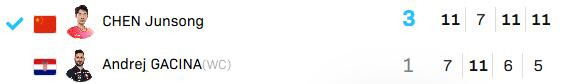 陈俊菘的打法非常灵性,根据比赛形势能有很好判断,且快速作出应变,偶尔遇到困难,也不会持续被带偏节奏,基本功非常扎实,做好发接发环节,频频创造上手机会,3比1顺利过关。