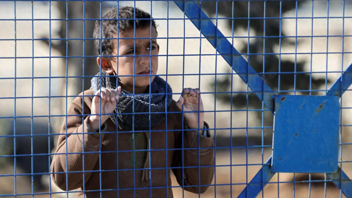 在叙利亚哈塞克,又名男孩透过围栏向外窥察。此前,叙利亚政府军在叙利亚民主力量除掉后禁受了霍尔百姓营