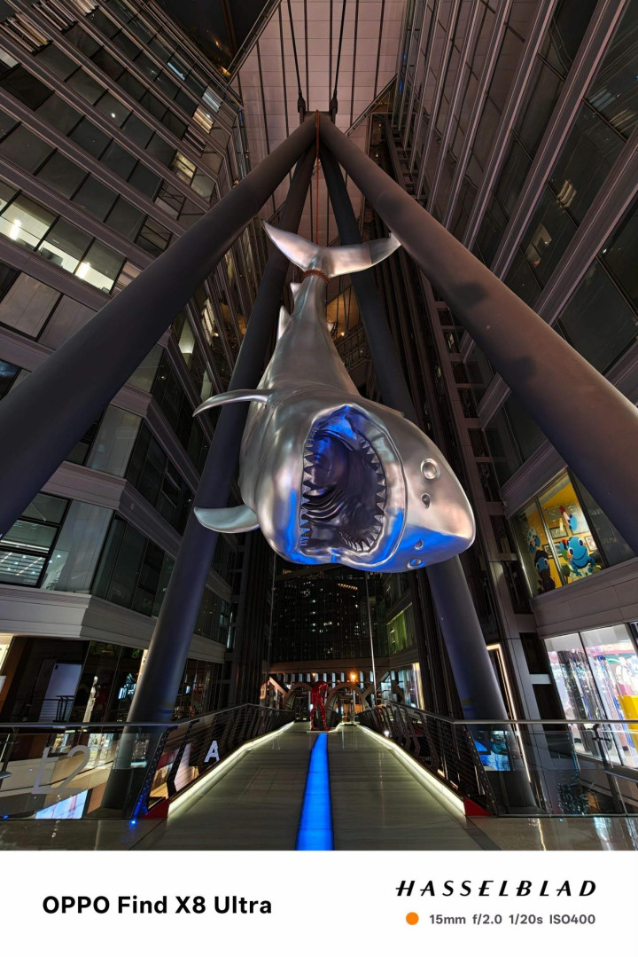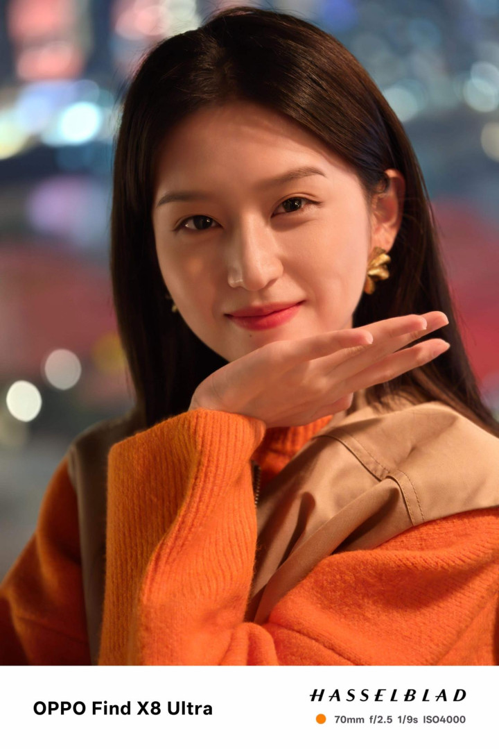实测来看,该机在夜景人像中能精准分离发丝与背景,眼神光重建自然,无明显 AI 过度修饰;85mm 长焦在拍摄远处建筑时,色散控制优于同级,边缘锐度保持良好。视频方面,全焦段支持 4K 60fps 10bit Log 录制,并搭载自研 V3+ 与 VS1 双芯,实现 80TOPS 算力,NPU 能效提升显著。